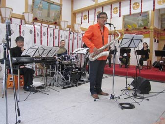 そういうわけで、普通のジャズファンのためのコンサートではなく、神社にゆかりの方や、付近に住む方が中心。また小学校や中学校の同窓生も、何人か見えてました。